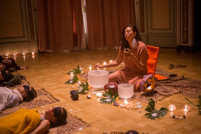 Las vibraciones de los cuencos y los distintos instrumentos empiezan a envolver el espacio y no queda mucho por hacer más que entregarse a la experiencia.